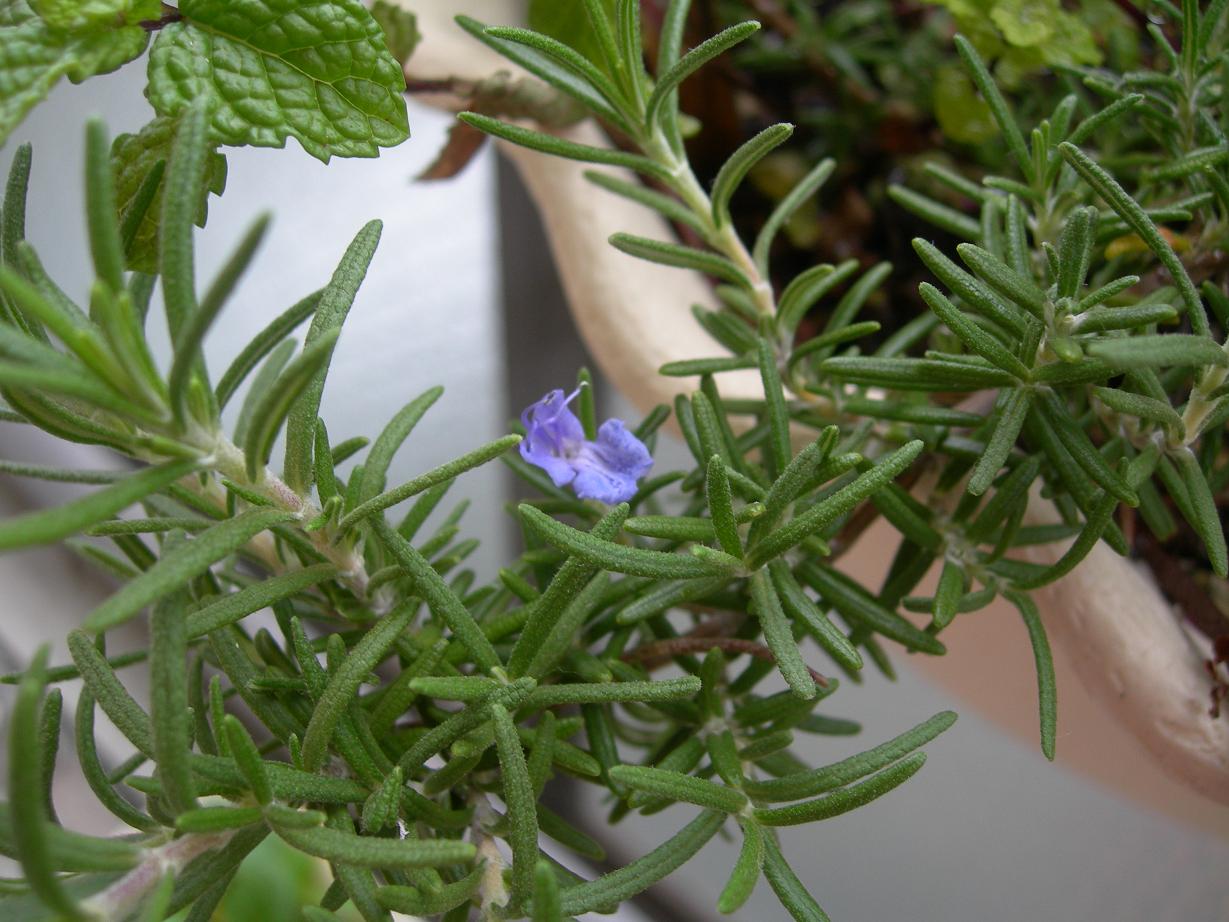 ベランダのローズマリーに花が咲きました。