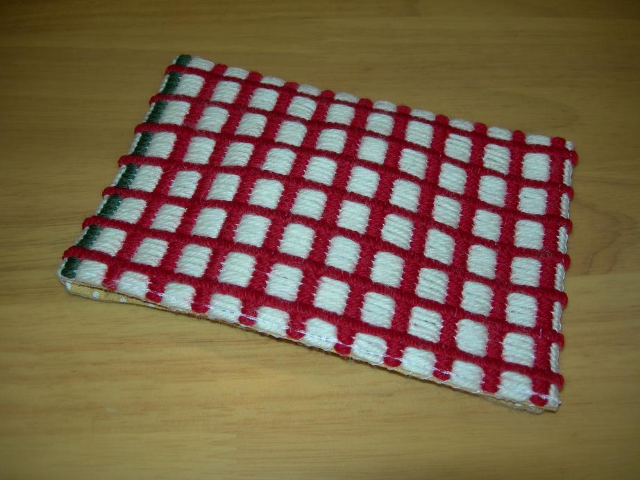 キャンバス地の網目(結構粗い)に毛糸を通していくので、