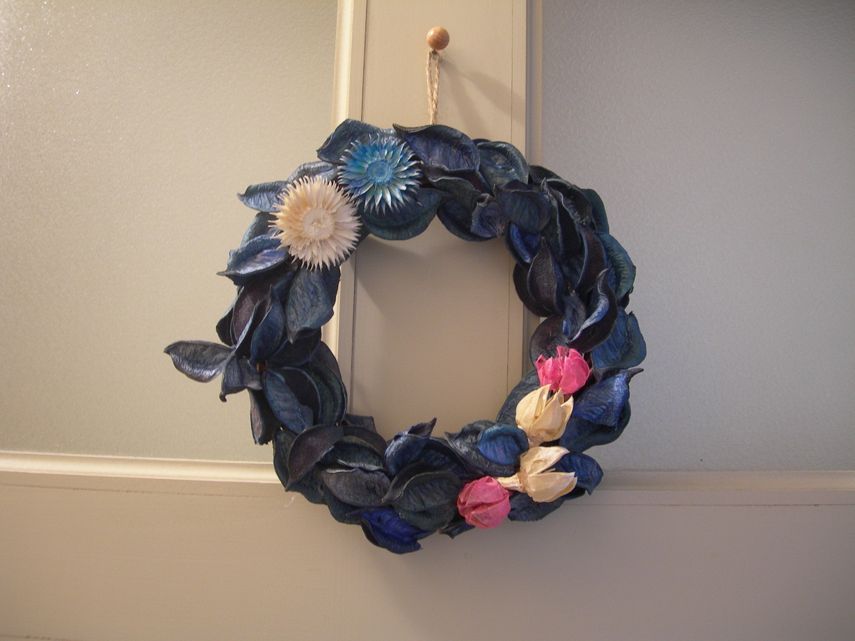 セリアのリース土台と、ダイソーのポプリでリースを作りました。