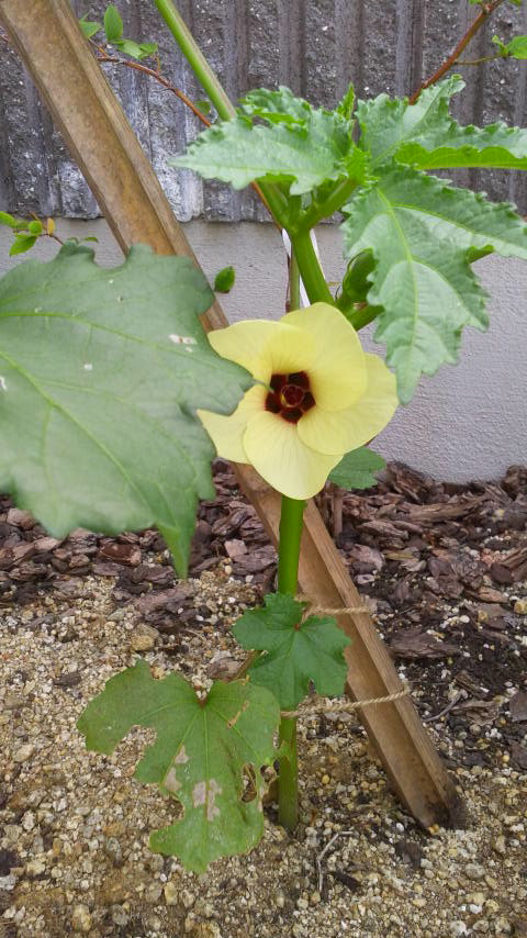 オクラに初めての花が咲きました~o(^o^)o